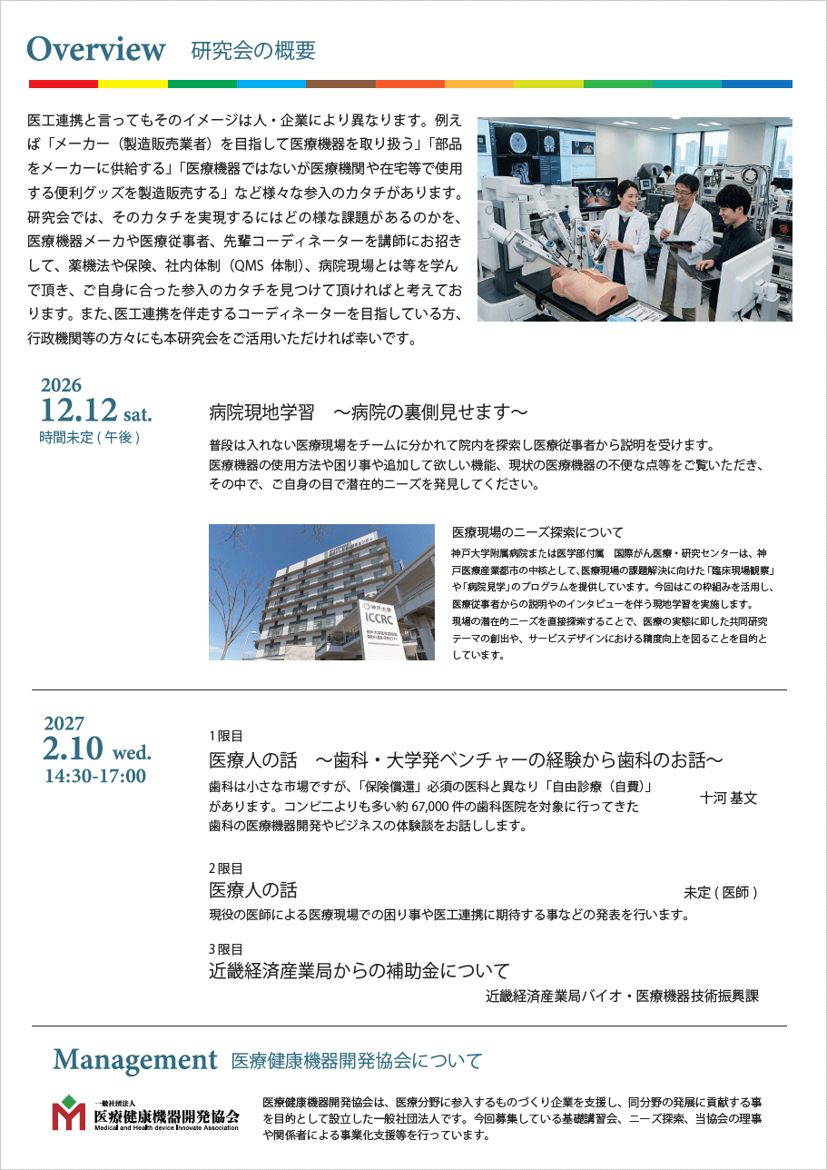 「医療健康機器開発協会」会員企業、「日本の技術をいのちのために委員会」正会員は無料。